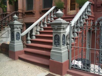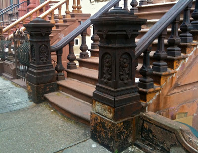 Since many of the brownstone blocks of Harlem were built during the time the trains were being planned uptown over 100 years ago, one may notice that some of the architectural elements to various houses look a little similar. When the stone townhouses were going up in the city at the end of the 19th century and the beginning of the 20th century, homebuilders would basically have been able to choose from an array of available mass-manufactured cast iron components from a catalogue. Assuming that many of these manufacturers were available on the market at the time, these intricate details were probably a little more affordable to the average developer.
